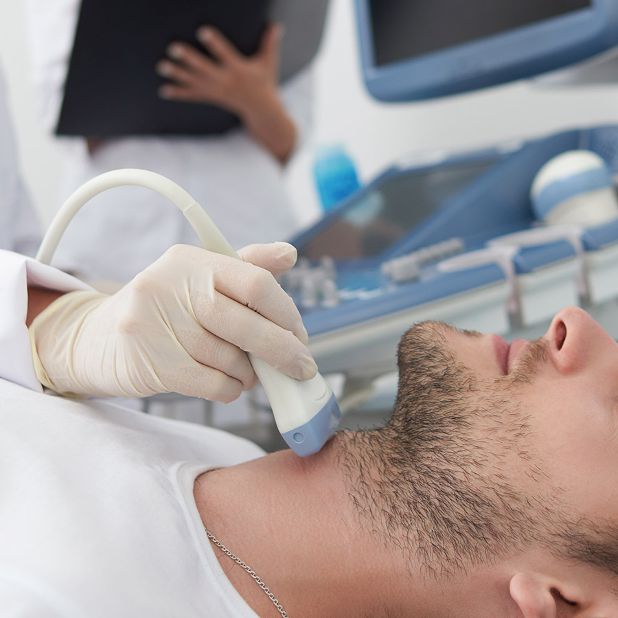 para analizar la apariencia de los nódulos en la tiroides y así determinar si son uno de los nódulos benignos más comunes o si el nódulo tiene características que requieren de una biopsia.